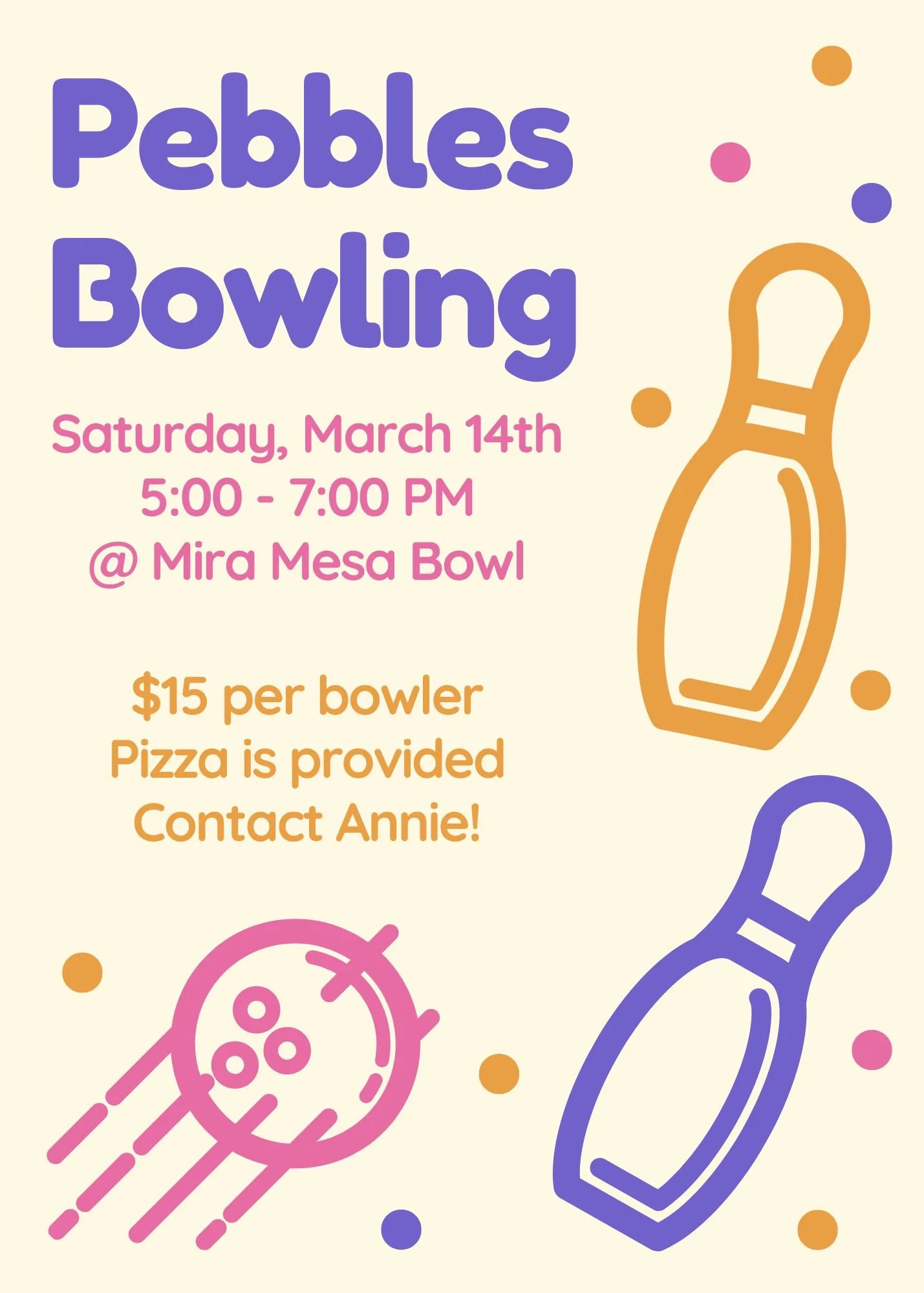 Pebbles is heading to the lanes for a fun-filled day of bowling, laughter, and connection! This special outing is a great chance for our kids to build friendships, enjoy time together outside of church, and create awesome memories with their leaders and peers. Whether they’re rolling strikes or just having fun trying, every child is welcome—no experience needed! Our Pebbles team will be there to cheer them on, keep things safe, and make sure everyone has a great time. It’s more than just bowling—it’s about growing closer as a church family and helping our kids feel seen, loved, and included.
